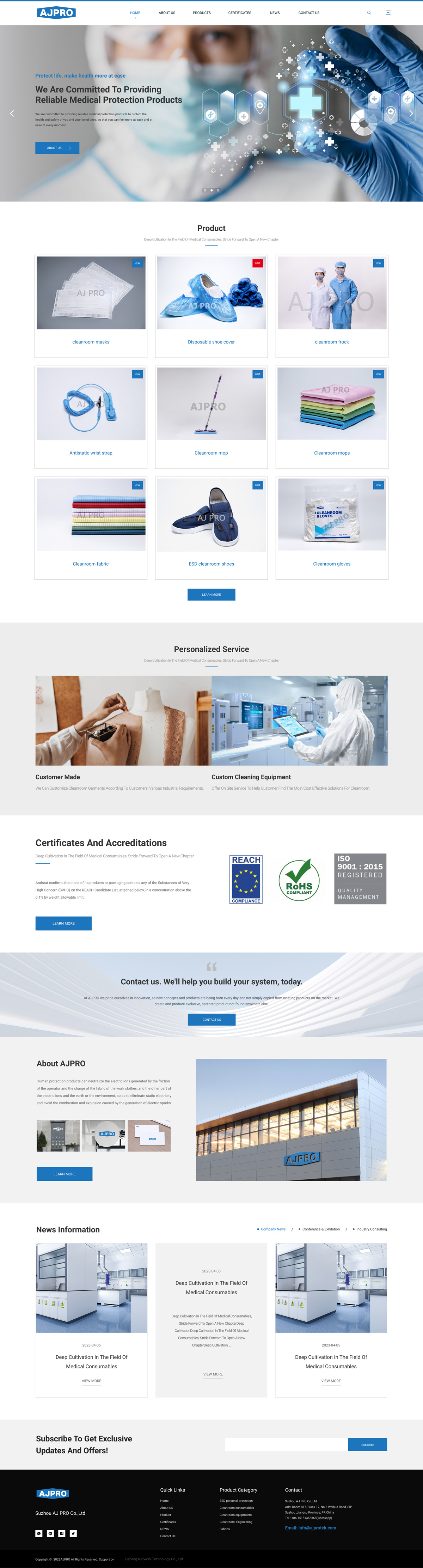 Suzhou AJ PRO Co.,Ltd is specialized in manufacturing the ESD and cleanroom consumables in China. We are dedicated to offer one-stop solutions for static and contamination control. AJ PRO invested in a 6,000-square-meter production base in Taizhou City, Jiangsu Province. The base has a Class 10 testing environment, Class 100, 1000 and 10k production workshop, cleaning equipment of 18MΩDI water.
