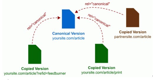 谷歌搜索建議那些使用CDN技術的站點,必須要使用rel=canonical對頁面的標準進行定義,這樣就能夠避免谷歌蜘蛛抓取大量重復的內容!我們可以用下張圖來表示